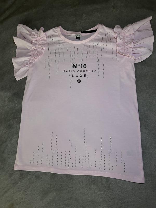 🔹 Оригінальна футболка бренду River Island 🔹 Розмір: 13–14 років / 164 см / EUR 14Y 🔹 Стан: нова, не носилася 🔹 Колір: ніжно-рожевий 🔹 Стильний декор: пишні рюші на рукавах, стрази, надпис No.16 Paris Couture Luxe 🔹 Тканина: 100% бавовна, м’яка та приємна до тіла 🔹 Підійде як на щодень, так і для особливих випадків 🔹 ПОГ - 47 см 🔹 Довжина - 60 см 📦 Відправка Новою поштою або Укрпоштою 💬 Пишіть — відповім швидко