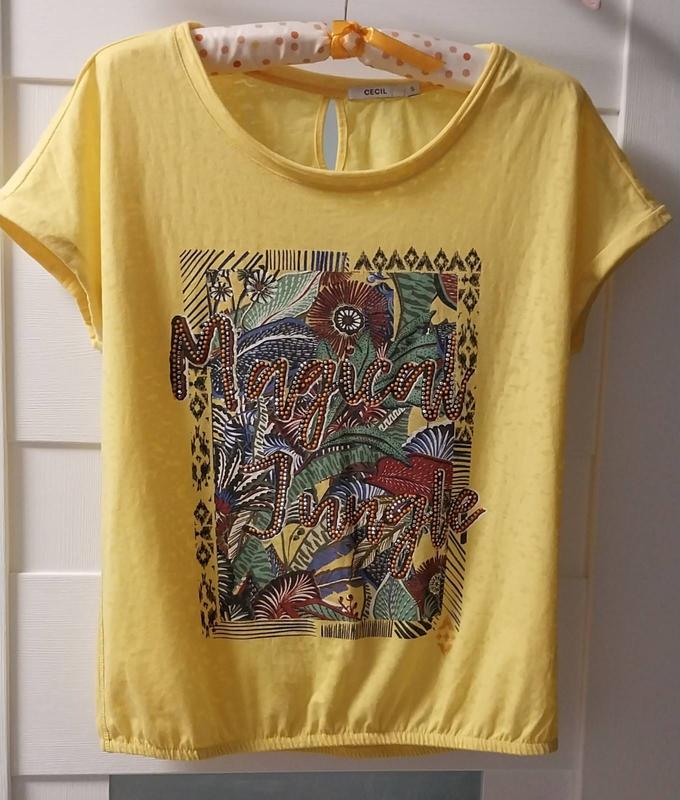 Очень красивая футболка, приемная, в хорошем состоянии. Свободный крой, низ - резинка. Замеры: грудная до 52см, низ резинка 42см, длина 58см.