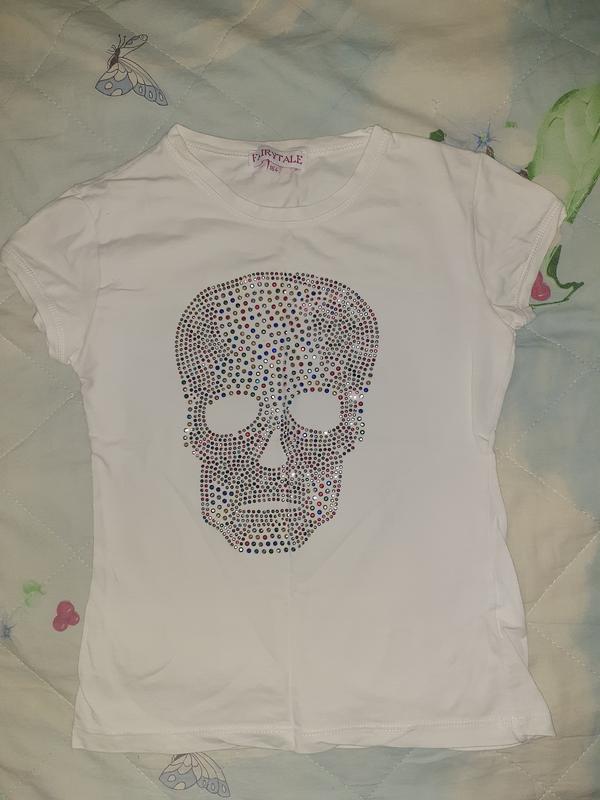 Футболка с принтом "череп" с камнями.Пойдет на рост 164 см.