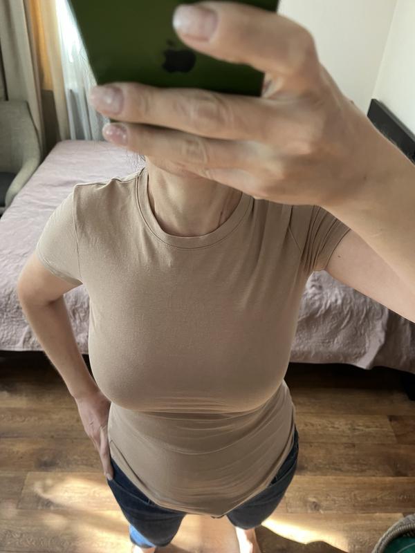 базовая бежевая футболка Primark XS, одетая на М Длина 59 см плечи 37 см ПОГ 39 см