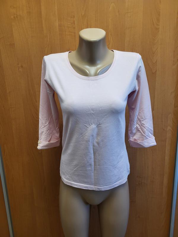 Футболка с удлиненным рукавом OLKO нежно-розового цвета Размер 38/М/46 Склад тканини: 90% бавовна, 10% еластан Замеры в спокойном состоянии: ПОГ- 41 см ПОТ- 38 см Рукав от проймы/ от плеча- 29/36 см Плечи- 34 см Длина по спинке- 55 см