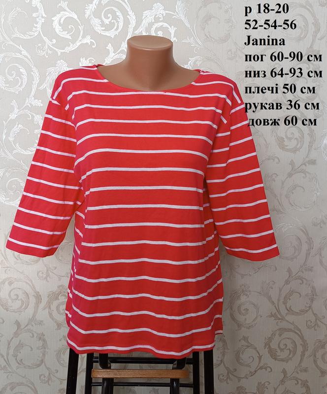 р 18-20 / евро 48 / 52-54-56 розовая футболка с рукавом 3/4 в полоску тельняшка хлопок трикотаж большая батал Janina * В идеальном состоянии. Цвет как на фото с биркой - розовый в белую полоску. * Замеры в ровном виде и максимально потянув на фото. * На наборе указан XL, подойдет на 18-20 размер. Пересылаю Укр или Новой по почте с полной предоплатой на карточку Приват.