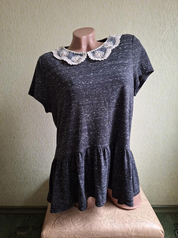 Этикетки с размером нет, ориентируйтесь по замерам. Длина 64 см. Подмышками 52 см, тянется до 70 см. Шов с баской 54 см. Низ клеш. Плечи 37 см.