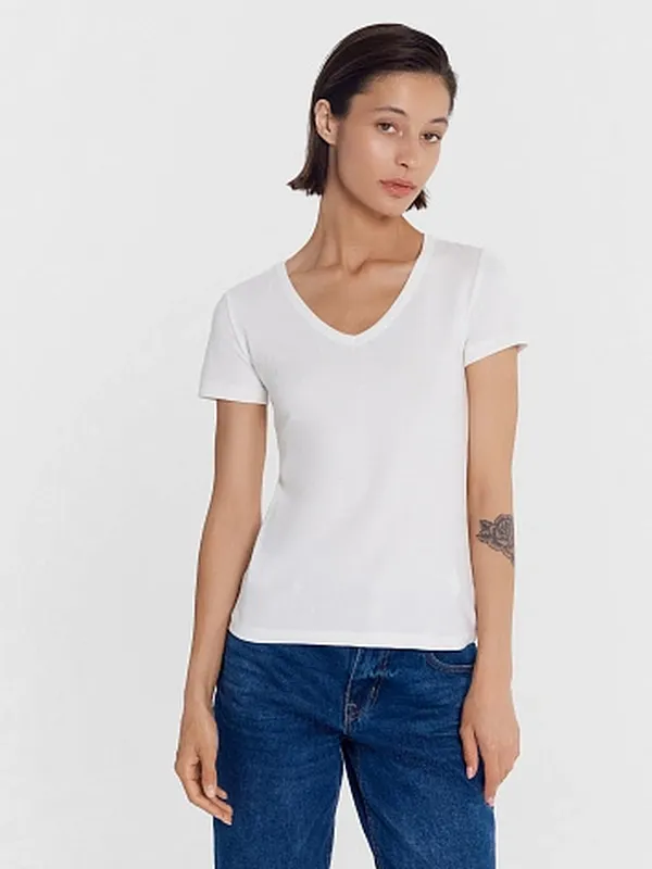Базовая белая футболка с V образным вырезом Замеры: пог 45, плечи 39, длина 65