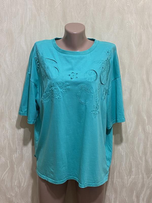 Котонова футболка з вишивкою George, нова без етикетки. Тканина склад 96% котон, 4% еластан. Розмір написаний 16 іде на 20-22, дивіться виміри ПОГ 61см ПОТ 60см ПОБ 61см довжина по спинці від лінії плеча 64см Надсилаю Новою поштою, укрпоштою. 4020