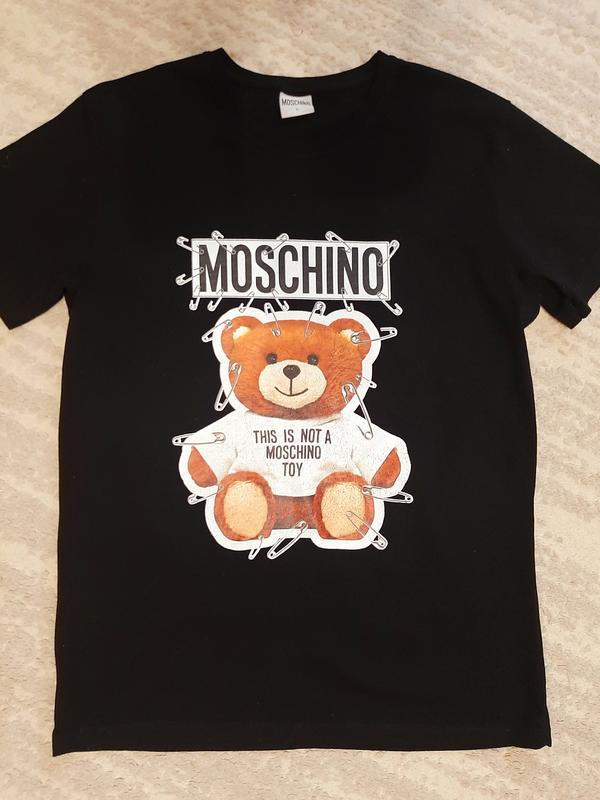 Забавная футболка с медведиком. Не застиранная, идеально черный цвет, небольшой дефект при растяжении ткани на последнем фото. Длина 66см, пог 48см.