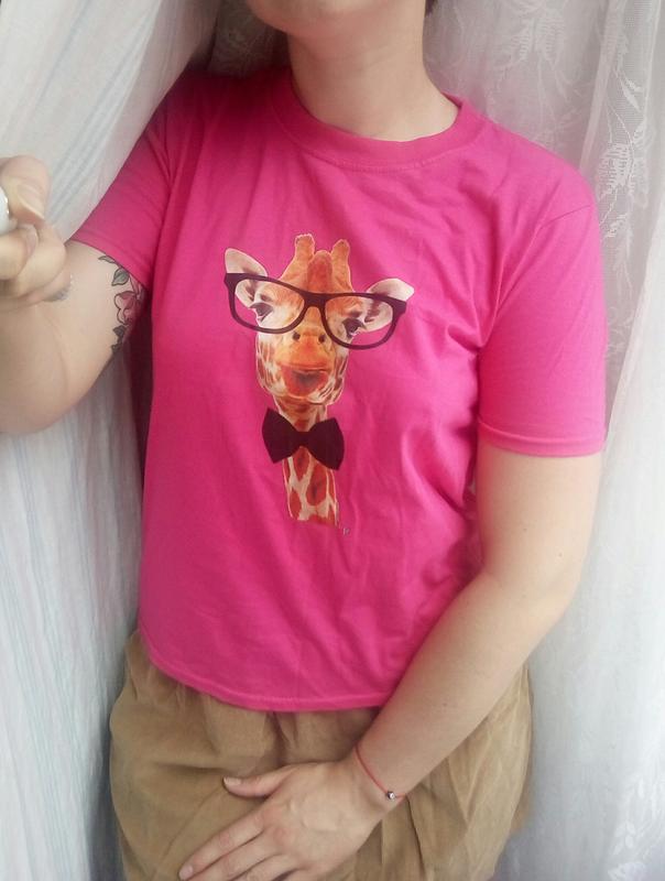 Прикольная смешная розовая футболка жираф в очках, s,m р.