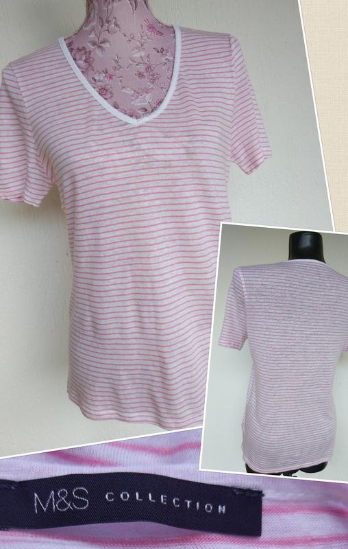 Фирменная стильная качественная натуральная футболка в полоску из льна.
