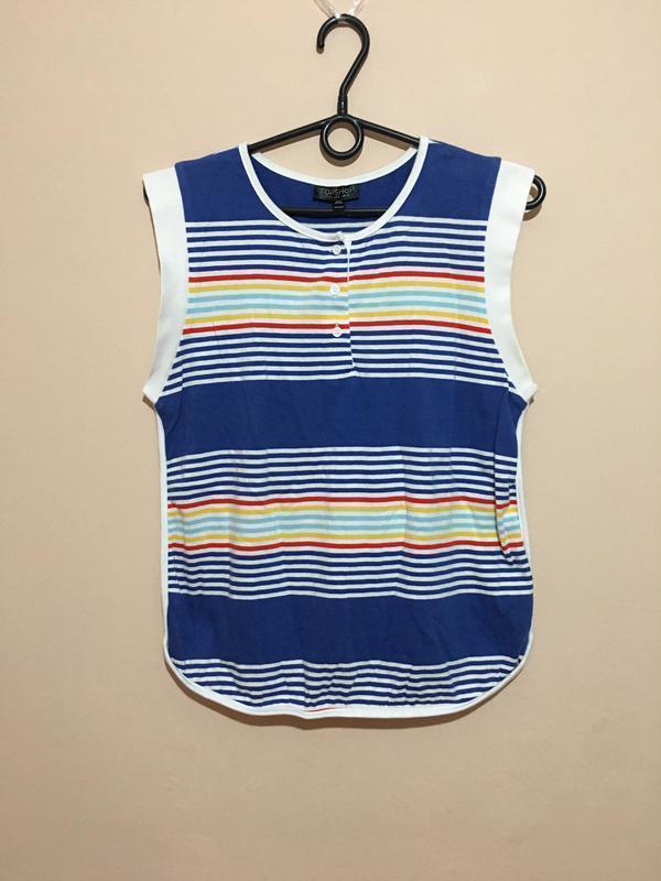 Длина: 59 см ПОГ: 46 см ПОБ: 49 см Тянется. Фото на теле нет. Нюанс: на одной из пройм внизу есть два еле заметных пятнышка (указала на фото). Можно запросто убрать ванишем. В цене учтено.