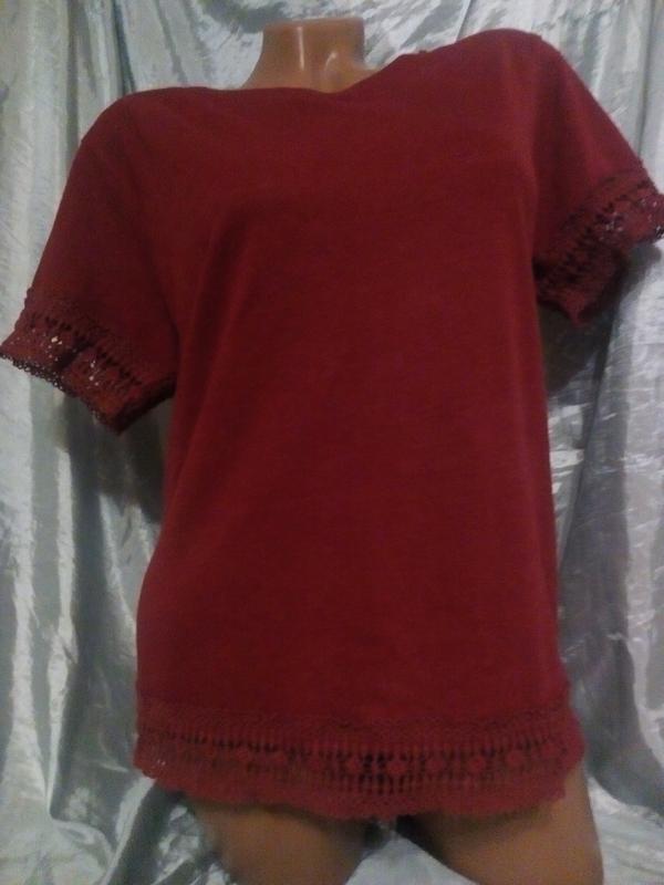 Футболка с кружевом GEORGE. Б/у. ПОГ 52, ПОБ 54, длина 58, длина рукава 19, плечо 9, плечи 44. Ширина кружева 6 см. Кружево хлопок, основа -51% лен. 49% полиэстер.. Отправка Укрпочта, новая почта, ин-тайм.