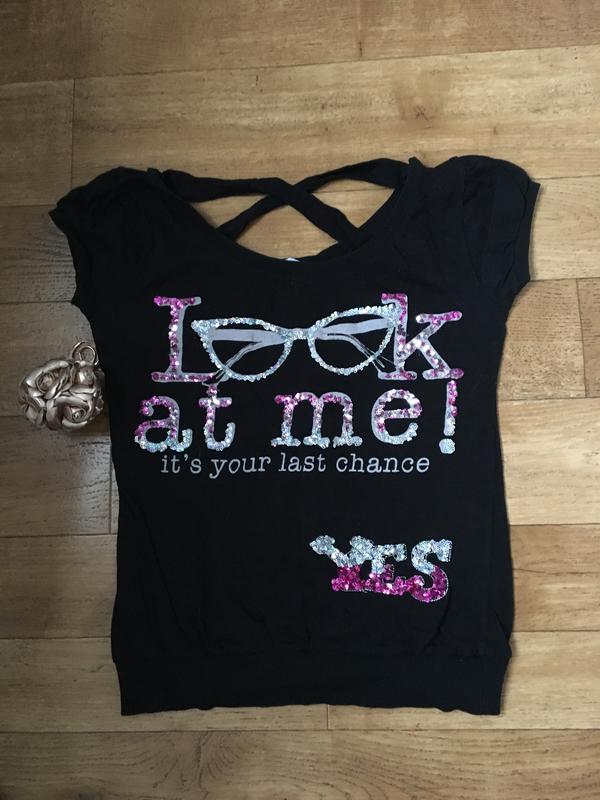 Красивая футболка. футболка с пайетками. чёрная футболка. футболка с очками