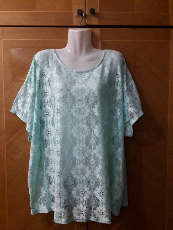 Состояние новое, но бумажной бирки нет. Спереди и рукава красивая полупрозрачная кружевная ткань. Сзади трикотаж. Длина по спине 67 см. Длина от подмышек 35 см. Длина по переду 65 см. Плечи 22см. Рукав 16 см. Полуобхват груди 80 см. Полуобхват по низу 74 см. Смотрится стильно и красиво! ❗Доставка Новой или Укрпочтой за счет покупателя. ❗Отправляем после полной оплаты на карточку Приватбанка. *01408*