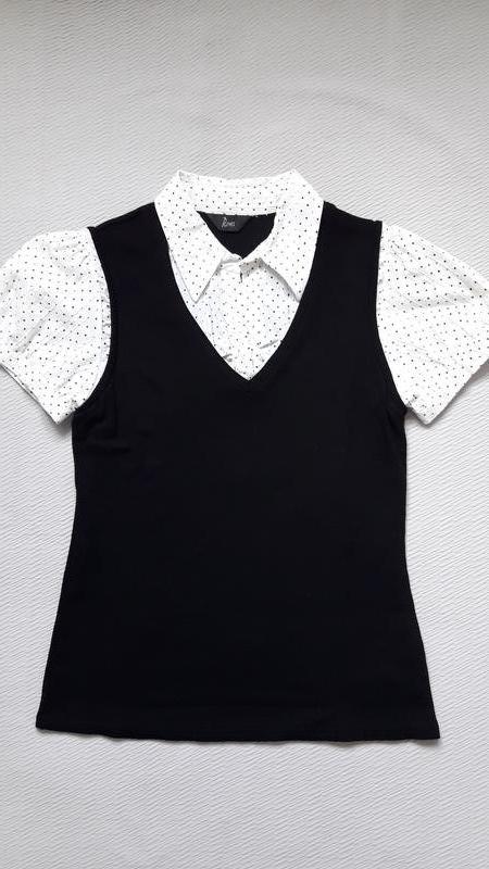 Стильная комбинированная футболка имитация жилетки принт горох petites bhs