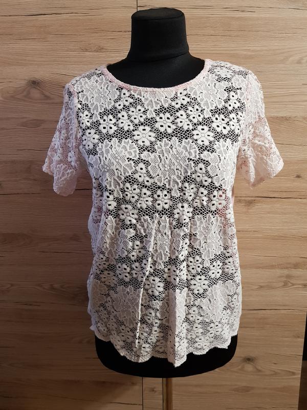Красивая футболка (блуза), бренд George, бледно-розового цвета. Перед из кружева, спинка - трикотаж! Состояние новое, размер 40. ***