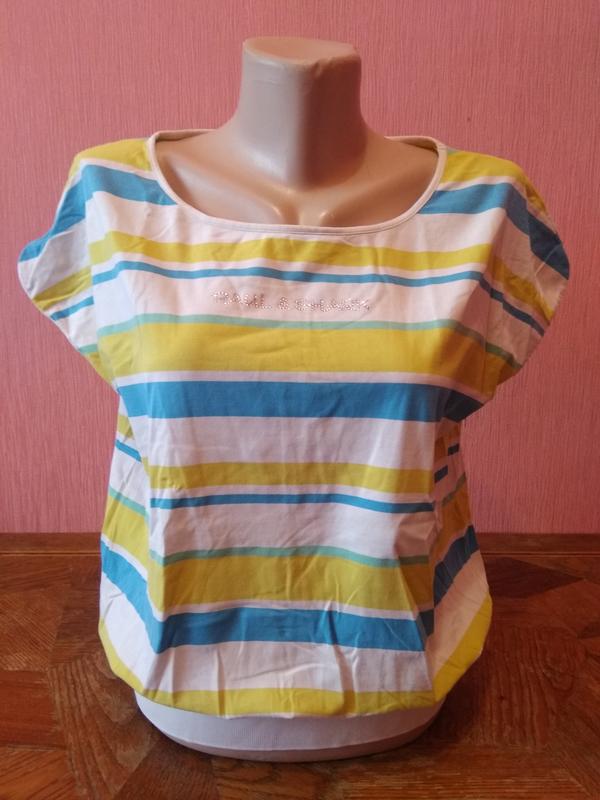 Классная, стильная футболка Paul&Shark Оригинал Итальянский бренд Спереди из камней Swarovski название бренда Внизу под резинку Модель идёт с напуском, свободного кроя Есть брак ткани - спереди на желтой полоске дырочка Модель новая Размер по бирочке XS, но она спокойно садится и на размеры побольше Материал качественный Хлопок 100% По всем дополнительным вопросам обращайтесь в любое удобное для Вас время