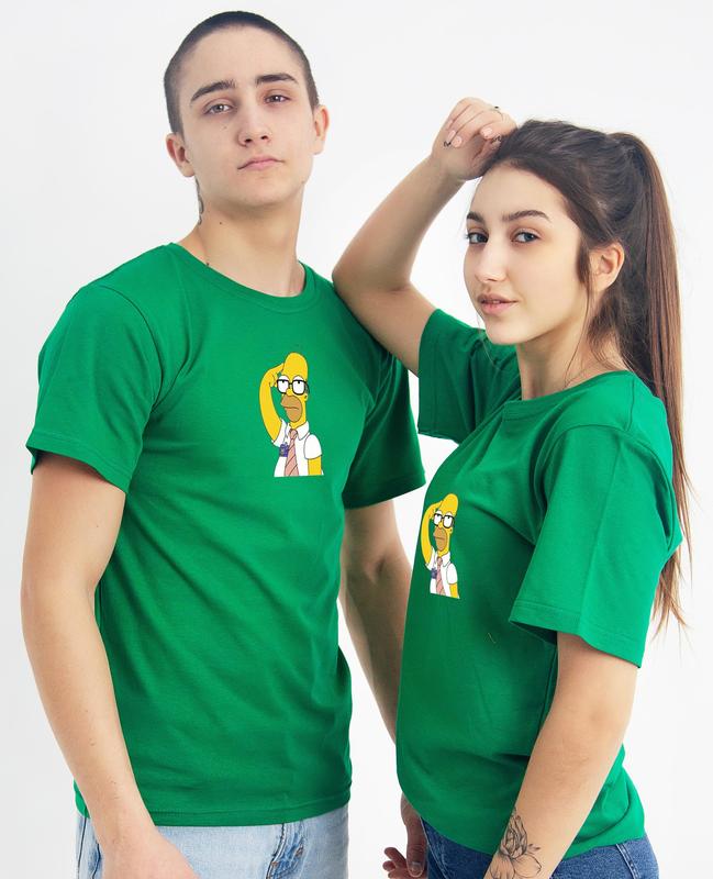 Футболка летняя зелёная унисекс гомер симпсон в очках