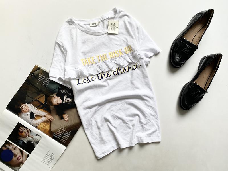 Красивая белая футболка с рюшами длинна 62 пог 50 100% хлопок