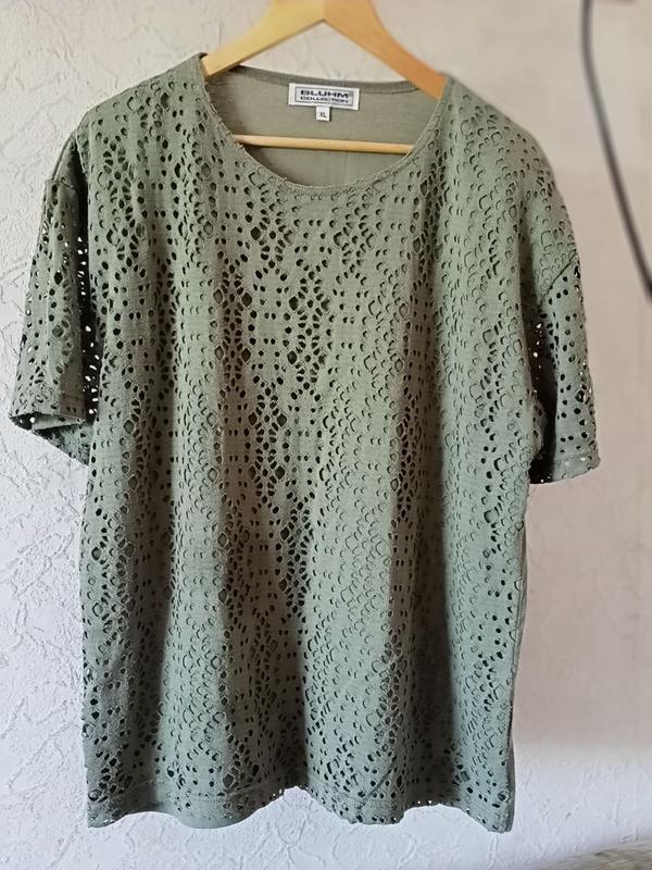Продам стильную, нарядную футболку женскую размер XL. Состояние отличное. Состояние новой вещи. Цвет вообще не получился. В реальности цвет очень красивый цвет хаки и футболка намного красивее смотрится в реальности, чем получилось на фото. Замеры: длина 69 см, полу обхват подмышками 60 см, длина рукава 20,5 см, полу обхват по талии 58,5 см, по плечам 56 см. Состав: 65% Polyester/ 35% Baumwolle