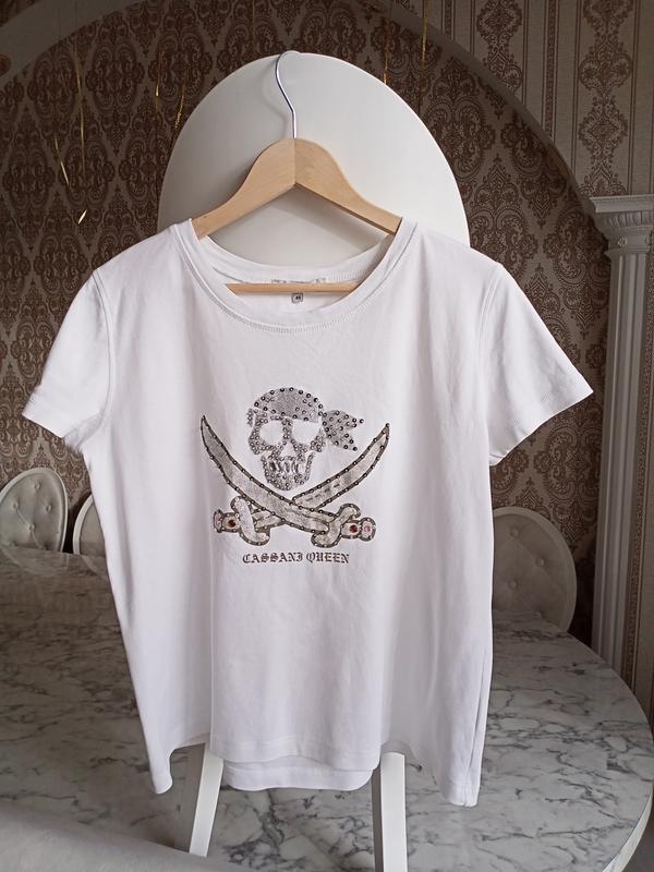 Біла футболка з черепом бренду Cassani. Розмір на бірці 46 заміри: Пог 55-58 пот 54-57 довжина 61 плечі 43-44