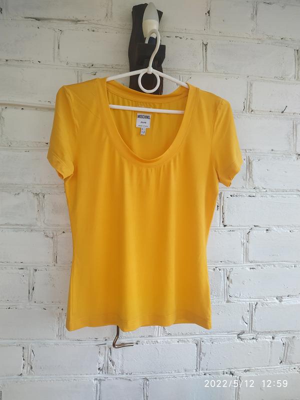 Красивая футболка золотистого цвета.Точный цвет можно увидеть на последнем фото.На футболке есть маленькие затяжки на фото показала.