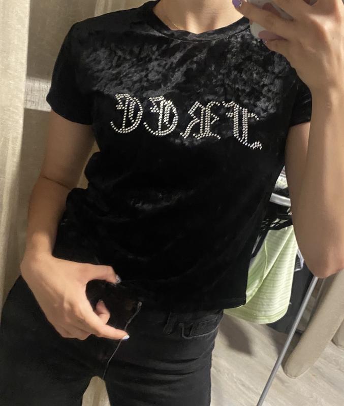 Футболка велюр ( длина 48 см)одето на грудь 88 см и талию 66