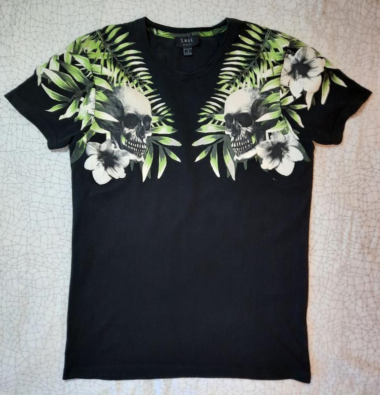 Летняя футболка с черепами от SMOG. Хорошо дополнит ваш образ на Halloween 🎃👻. Подойдет на размер S/M. Обращайтесь за детальной информацией в привод!