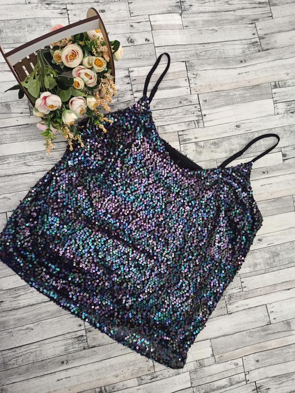 📌варий учесть! цена + % шкафа Классная новогодняя праздничная майка с пайетками размер не указан, выборочки срезаны 👍ориентивно на м/л пайетки очень красиво прерываются