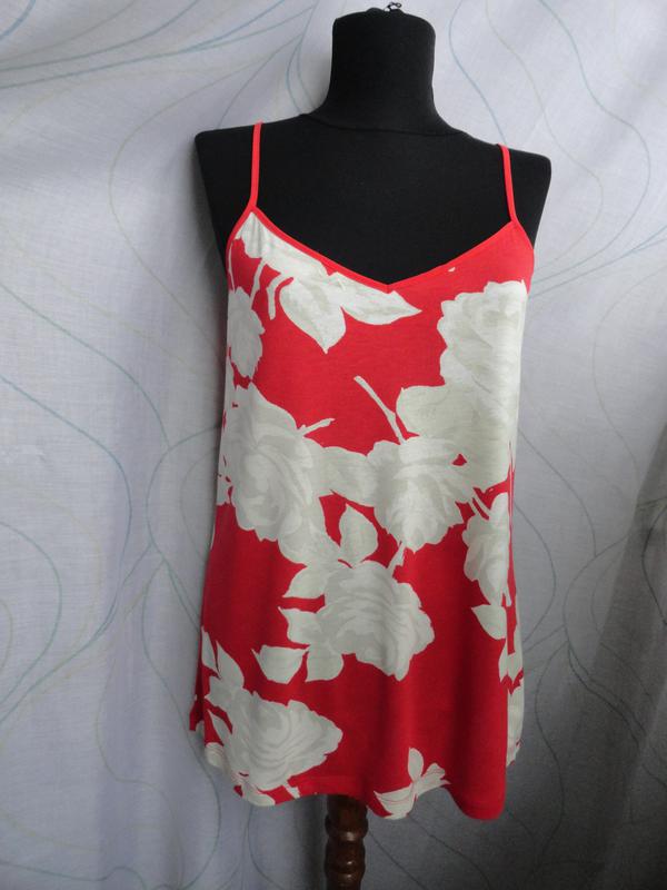 Легенькая маечка на тонких бретельках , следов носки нет. Длина от высшей точки на бретельке - 70 см . ширина по линии груди - 46 см , по низу - 60 см .