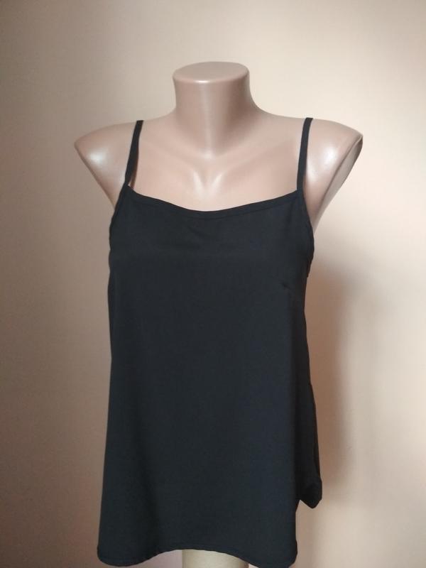 Майка на тонких брительках размер 36, черного цвета, спереди шифон, сзади трикотаж.