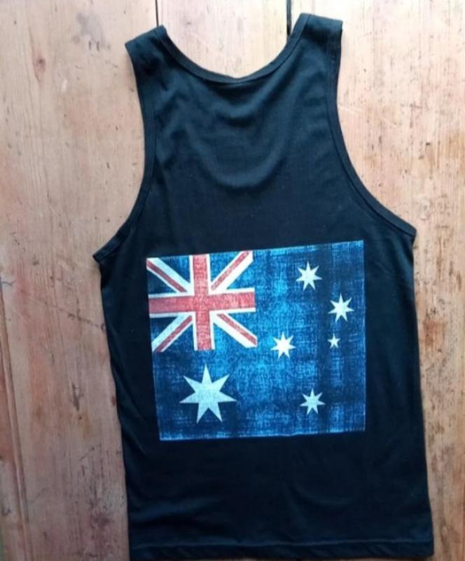 майка с изображением флага Австралии на спине. длина 70см., пог 40см.