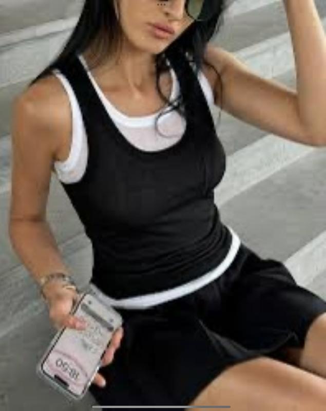 Якісний топ ( дві майки) с трендовой U-образной горловиной, з фірмоаою булавкою з зображенням братів-дизайнерів. Нове з бірками. Купувала на Yoox. До чорної майки йде ще точно така ж біла теж з вітвірами до булавки. Можна носити разом чи окремо.
