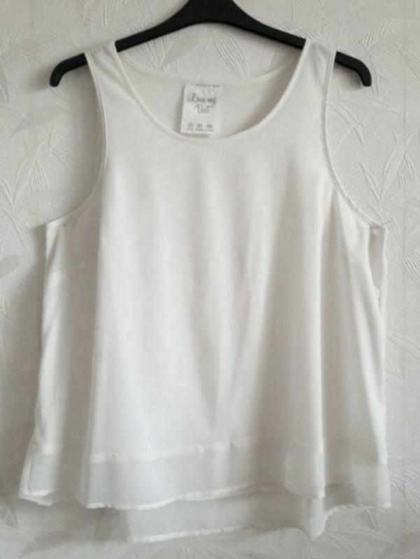 Элегантная шифоновая майка от ирландского бренда Atmosphere, Primark. Майка в состоянии нового. Основная часть сделана из плотного шифона. Не просвечивает. Рюшь внизу из обычного шифона. Размер: 14/42 (евро), наш 50?-52-54?, а для уточнения смотрите замеры: длина спереди, от плеча 65см; длина по спине, от плеча 69см; длина по боковому шву, от проймы 39см; плечо 4,5см; полуобхват выреза проймы рукава 32см полуобхват по груди 60см, с натяжкой 62см полуобхват по по талии 62см; полуобхват внизу 66см; плечо 4,5см; полуобхват выреза проймы рукава 32см. Материал:полиэстер, но по текстуре, как нежный, воздушный шифон. На последних фото комплекты, подобранные с кардиганом из моих объявлений. Полиэстер (Polyester) – один самых распространенных и современных материалов, который используется для создания синтетических тканей различных видов. В процессе изготовления в него могут добавлять самые разные натуральные волокна коттона, шерсти, или вискозы. Основные характеристики могут меняться в зависимости от способа производства и обработки. Но основные свойства полиэстера следующие: Напоминает хлопок. Один из самых прочных материалов. Стойкий к износу. Ткань имеет низкий вес. Отлично сохраняет форму (особенно при нагреве). Мнется, но не так сильно как натуральные материалы. Не чувствителен к воздействию солнечного света и микроорганизмов. За ним легко ухаживать и стирать.