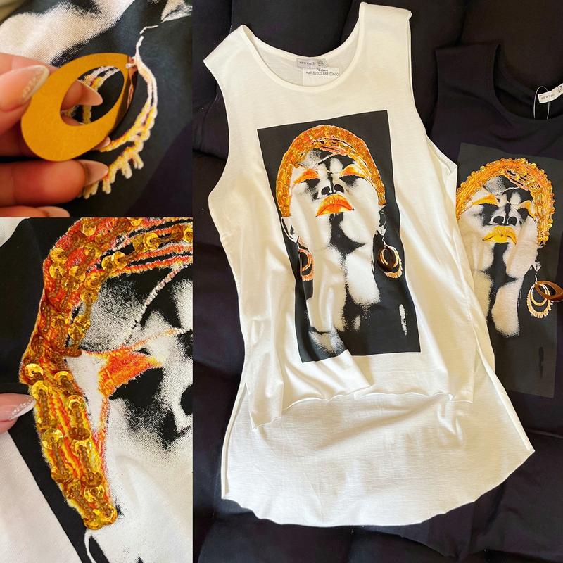 Цена 299грн🔥🔥🔥 Стильные маечки💣 По спинке длиннее, по бокам разрезы. Украшения пришиты.🤩 Белые в размерах М, Л Черная Л М: ПОГ 45, длина по спинке 75 Д: ПОГ 59.
