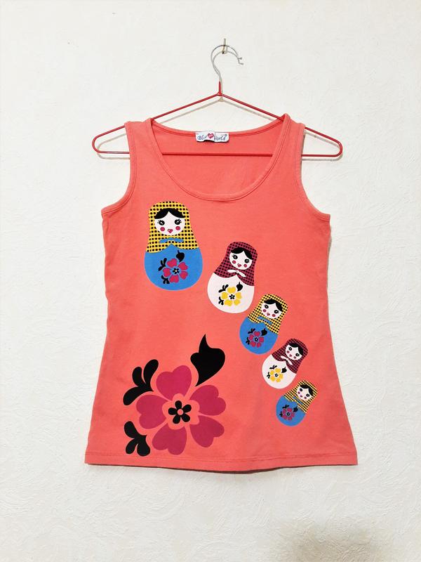 Blue world турецкая майка летняя розовая принт матрёшки топ хлопок трикотаж женская
