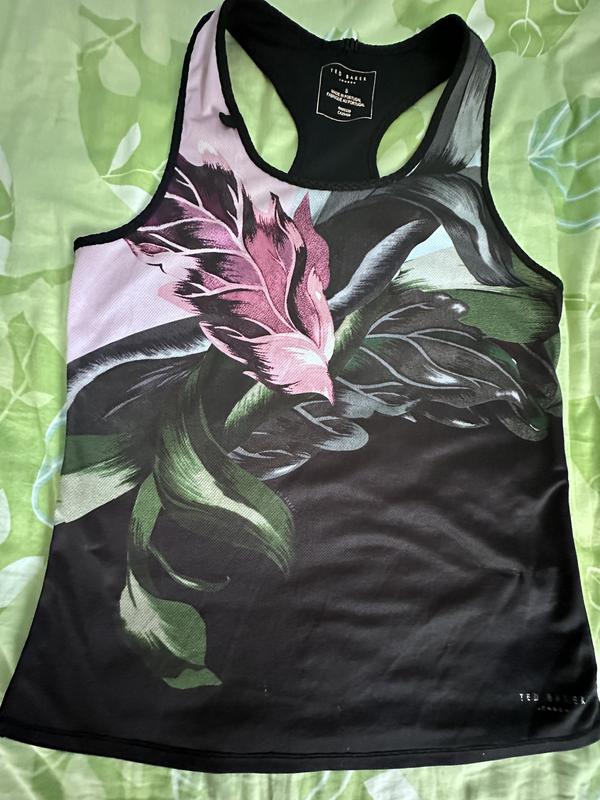Чорна Майка з квітковим принтом дорого преміального бренду Ted Baker. Стан на фото, є зачіпки. Можливий торг. Розмір S. Поліестер.