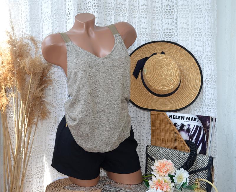 М фирменная женская майка маечка гладкий топ в бельевом стиле на бретелях Massimo Dutti оригинал. Можно раньше – позже, в бельевом фасоне позволяет. Очень модная штучка под любой стиль. Струится и красиво тянется. - V-образный вырез - широкие бретельки - гладка тканина Цвет - масло Cклад - 59 % лен 27 % вискоза 14 % полиамид Замеры объем груди п/о 40,5 см спинка 57 см Пересылаю укр и новой по почте самовывиз в Киеве! Обмен или возврат не предусмотрен
