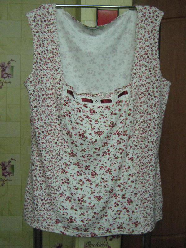 Очень качественная фирменная красивенная стрейчевая майка Jacqueline Riu. Производитель Франция. Размер М – ориентируйтесь на замеры. Очень нежный и красивый цветочный принт! Спереди украшена атласной ленточкой. Приталенный фасон. Майка в идеальном состоянии и очень приятная к телу. Очень качественный пошив. Состав: 93% вискоза, 7% эластан – очень нежная, тоненькая и приятная на ощупь ткань! Классная вещичка! Измерения в спокойном состоянии – маечка тянется: Полуобхват груди (ширина под мышками) – 46см Полуобхват талии – 41см Полуширина по низу – 46см Длина от плечевого шва к низу – 57см Отправлю по Украине Новой почтой или укрпочтой. Пишите – всем отвечу. Смотрите другие мои объявления – найдете много чего интересного. Приятных всем покупок!
