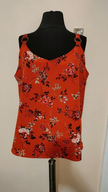 Майка шифоновая на тонких бретелях George • Украшен милым принтом и кольцами на бретелях • Бретели регулируются • Состояние: идеальное • Состав: 100% полиэстер • Размер: 14 • ПОГ - 52 см • Длина - 64 см