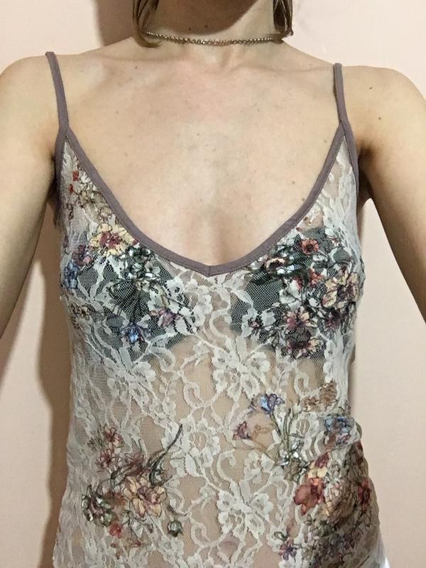 Маечка кружевная Mark's & Spencer. Полупрозрачная. Тянется. Размер: 38(10). Длина: 53 см ПОГ: 40 см ПОТ: 36 см ПОБ: 41 см + тянется Без дефектов!