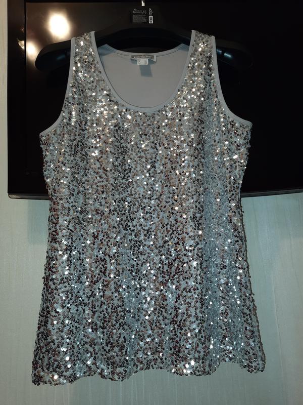 Топ майка праздничная в серебристых пайетках, размер 52- 54. Замеры: полуобхват груди 51 см длина по спинке 67 см Производитель Турция Rainbow 🌈