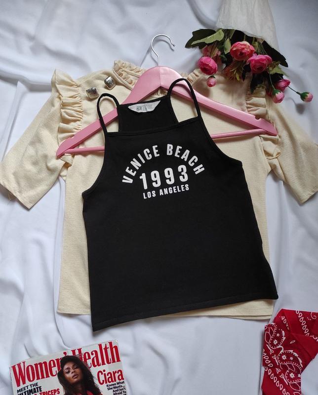 С такой укороченной майкой ты можешь создавать стильные спортивные, городские и пляжные образы, меняя сочетание одежды. Модель на тонких бретелях без регулировки длины пошита из эластичного трикотажа, с прямым низом и с окантовкой сверху изделия. Модель спереди украшена модным принтом в виде надписи. Носи этот модный кроп-топ как самостоятельный верх, и в паре с белыми женскими рубашками, кардиганами и другими изделиями Размер XS-S (указано на подростка)