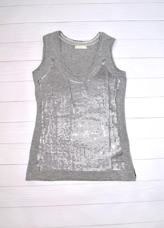 Майка Jake*s, декорирована по переду пайетками. В отличном состоянии, тянется. Размер S. Ширина подмышками - 40 см, длина по спинке - 57 см