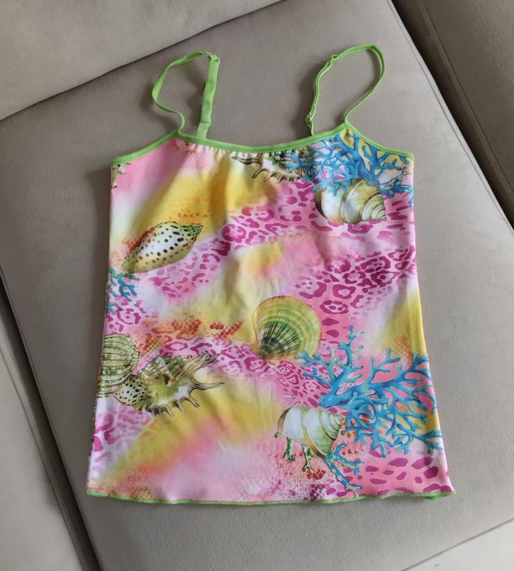 яскрава літня майка в ідеальному стані шлейки регулюються поліестр на розмір S, XS