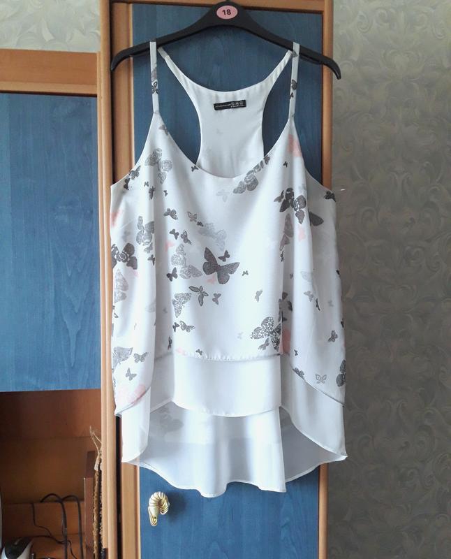 Элегантная шифоновая майка от ирландского бренда Atmosphere by Primark. Майка в очень хорошем состоянии. Наружная часть и подкладка из шифона. Указываю несколько размеров поскольку размерные сетки разных брендов отличаются. Размер: 16/44 (евро), наш: 48?-50-52?, а для уточнения смотрите замеры: длина спереди, от плеча 63см; длина по спине, от плеча 77см; длина по боковому шву 47см; полуобхват выреза проймы рукава 34см; при рассмотрении полуобхватов учитывайте, что материал ложится волнами, поэтому подойдет и на меньше: полуобхват по груди 51см; полуобхват по по талии 56см; полуобхват внизу 62см; плечо 4,5см; полуобхват выреза проймы рукава 32см. Полиэстер (Polyester) – один самых распространенных и современных материалов, который используется для создания синтетических тканей различных видов. В процессе изготовления в него могут добавлять самые разные натуральные волокна коттона, шерсти, или вискозы. Основные характеристики могут меняться в зависимости от способа производства и обработки. Но основные свойства полиэстера следующие: Напоминает хлопок. Один из самых прочных материалов. Стойкий к износу. Ткань имеет низкий вес. Отлично сохраняет форму (особенно при нагреве). Мнется, но не так сильно как натуральные материалы. Не чувствителен к воздействию солнечного света и микроорганизмов. За ним легко ухаживать и стирать.