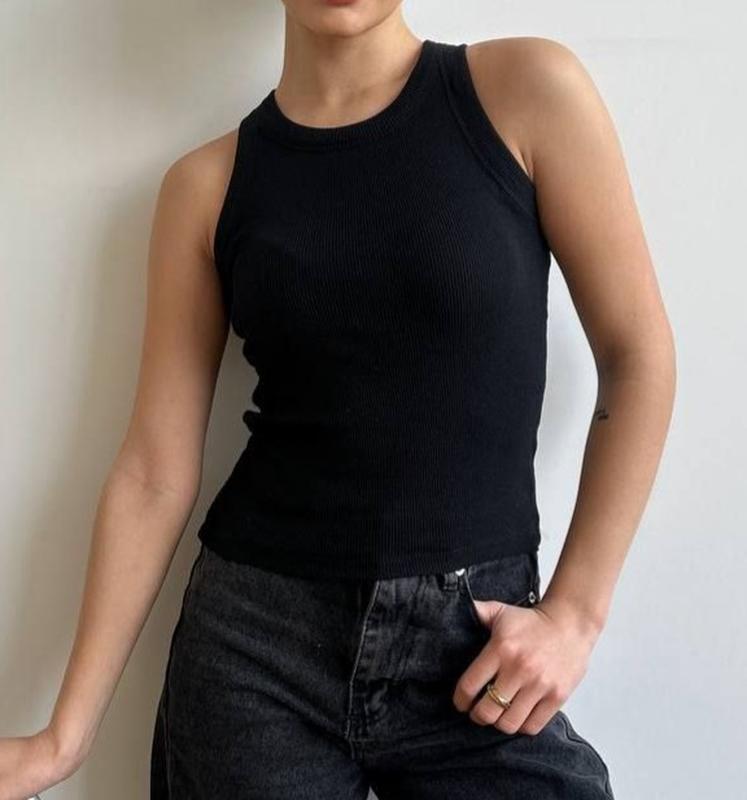 Базовая классическая однотонная повседневная новая женская обтягивающая облегающая майка т...