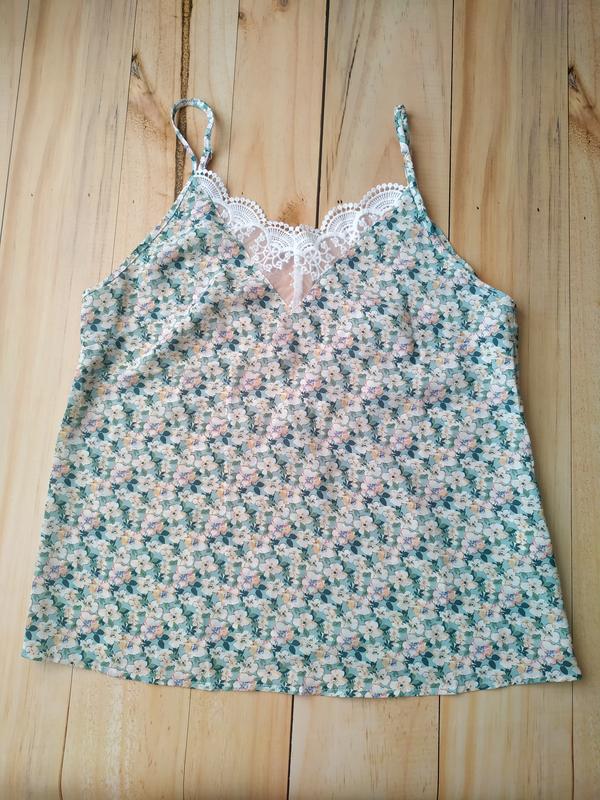 Майка кружевная Shein M размер цветочный принт Длина от верха бретели 64 см ПОГ 47 см 100% polyester.