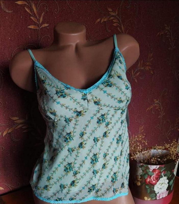 Шикарный топ/майка на тонких бретелях, нежного мятного цвета, с цветочным принтом, по низу топа и над грудью вязаная окантовка. Топ/майка новая с биркой 👌 🤗пишемся в тик токе, собираем подписчиков для проведения прямых эфиров, мой нок valeri_veg🤗 Замеры: Пог 40 (тянется до 46) Пот 34 (тянется до 37) Длина 51 (от бретели) 📦📬Отпрашиваю по предоплате на карту💳 приват банка или моно, и из-за безопасного оплата.