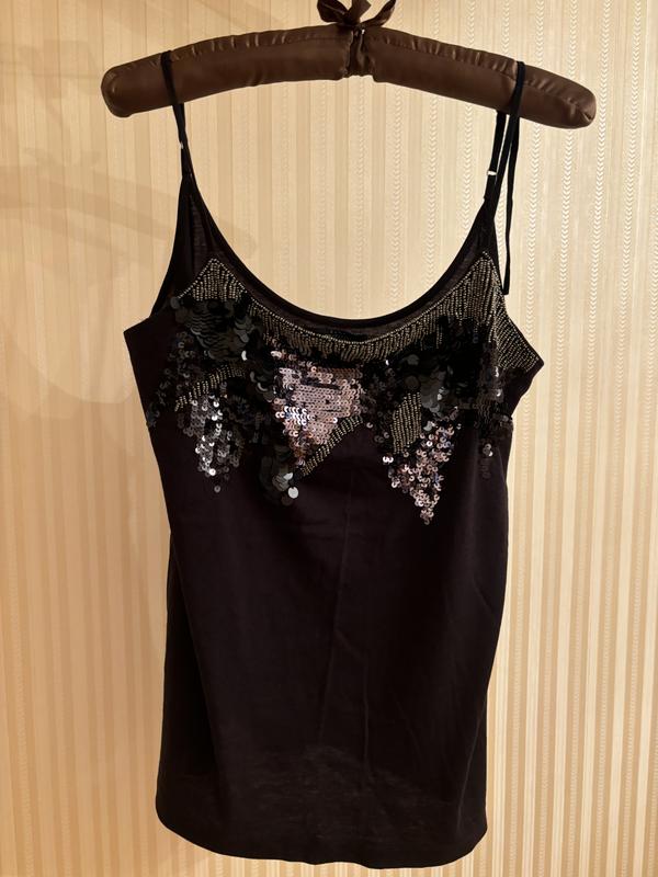 Нарядная майка с пайетками на бретельках Бренд: Zara. Размер -M . В идеальном состоянии. Микро нюанс, прокол от того , что прикрепляют к одежде в магазинах антикражные датчики от краж. Бретельки регулируются по длине, что очень удобно. Женские майки с пайетками прекрасно дополнят любой вечерний образ, который не предусматривает платье. Способ оплаты: на карту продавца . Обмена и возврата нет .
