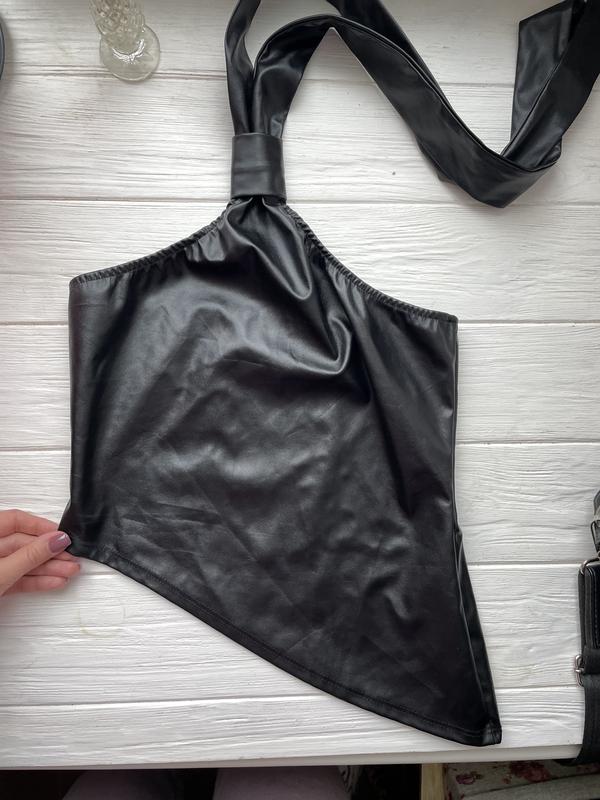 Топ из шкиззама, асимметричный топ, кожаный топ, майка из кожзама