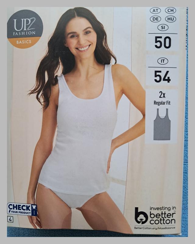 Новые, качественные,натуральные майки.Германия. Комплект 2 шт. есть размеры 44,46,50. р.46 -длина 69 см,ширина под грудью 36 см. Красиво тянется. другие размеры -дам замври по запросу. Также имеет майки на тонких лямках с кружевом. 100 % бавовна.